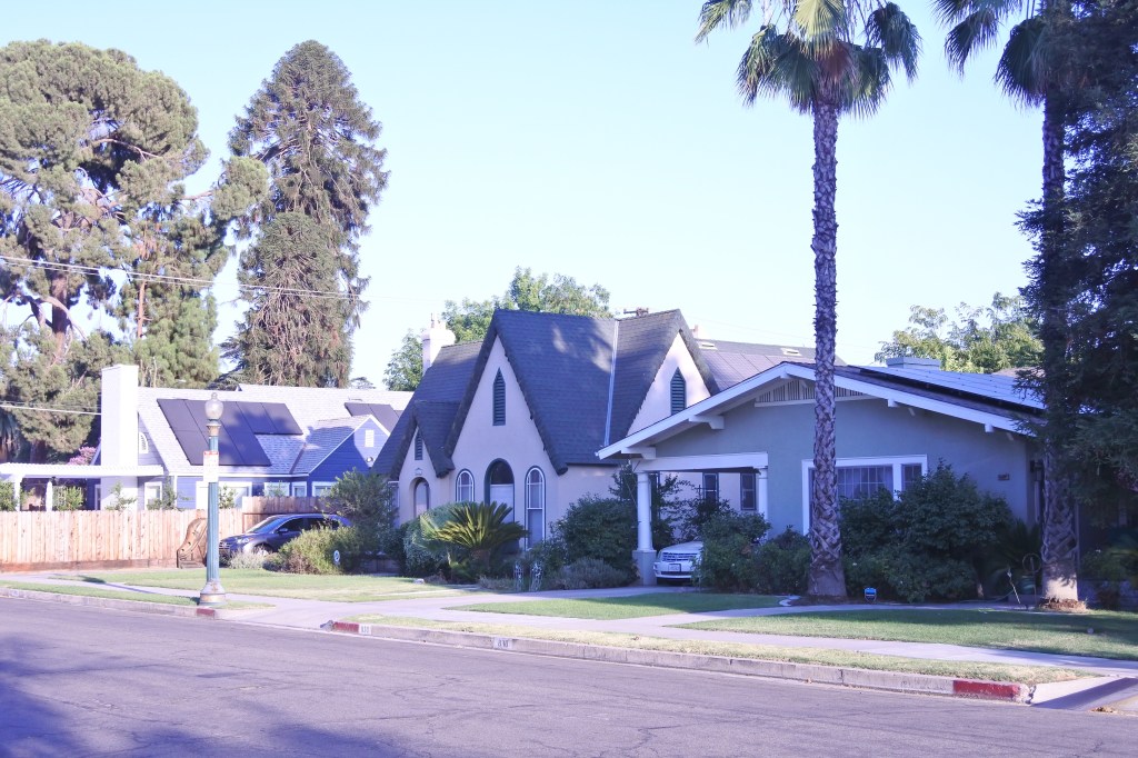 Fresno High is most know for its attractive 1920s-1950s single family homes that range from small bungalows and small cottages to larger Tudors, Spanish Revival and grand formal mansions. The best urbanism is its south eastern edge where it touches the Tower District and Fresno High School is located. Here there is a 2-block commercial district along Van Ness/ Echo Ave. The eastern edge of Fresno High contains a good mix of attractive single family homes (especially along Van Ness), duplexes, and small apartment buildings. Shields Ave is the other commercial district in Fresno High and hosts some neighborhood amenities but is rather auto centric. The western half of the neighborhood contains attractive 30s-50s modest bungalows, cottages, and ranch homes with limited access to walkable amenities.